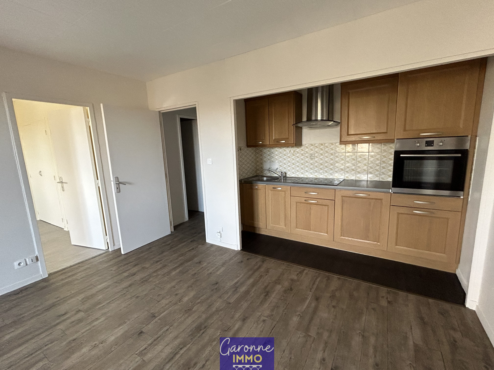 Il se compose d'une entrée, salon/séjour et cuisine ouverte équipée (plaque, hotte, four), une chambre avec grands placards de rangement, une salle de bain avec WC.