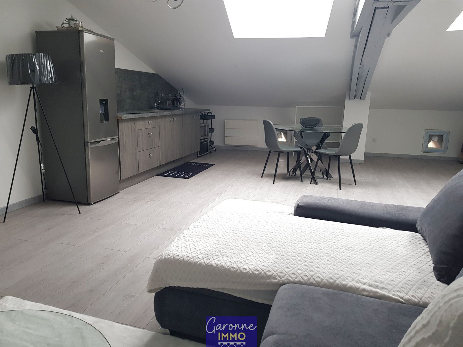 A louer appartement de 82 m2 mansardé, situé au 2ème étage, comprenant le salon/ séjour avec cuisine ouverte, une chambre avec salle d'eau et coin dressing, un WC séparé.