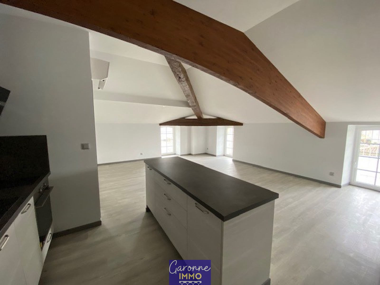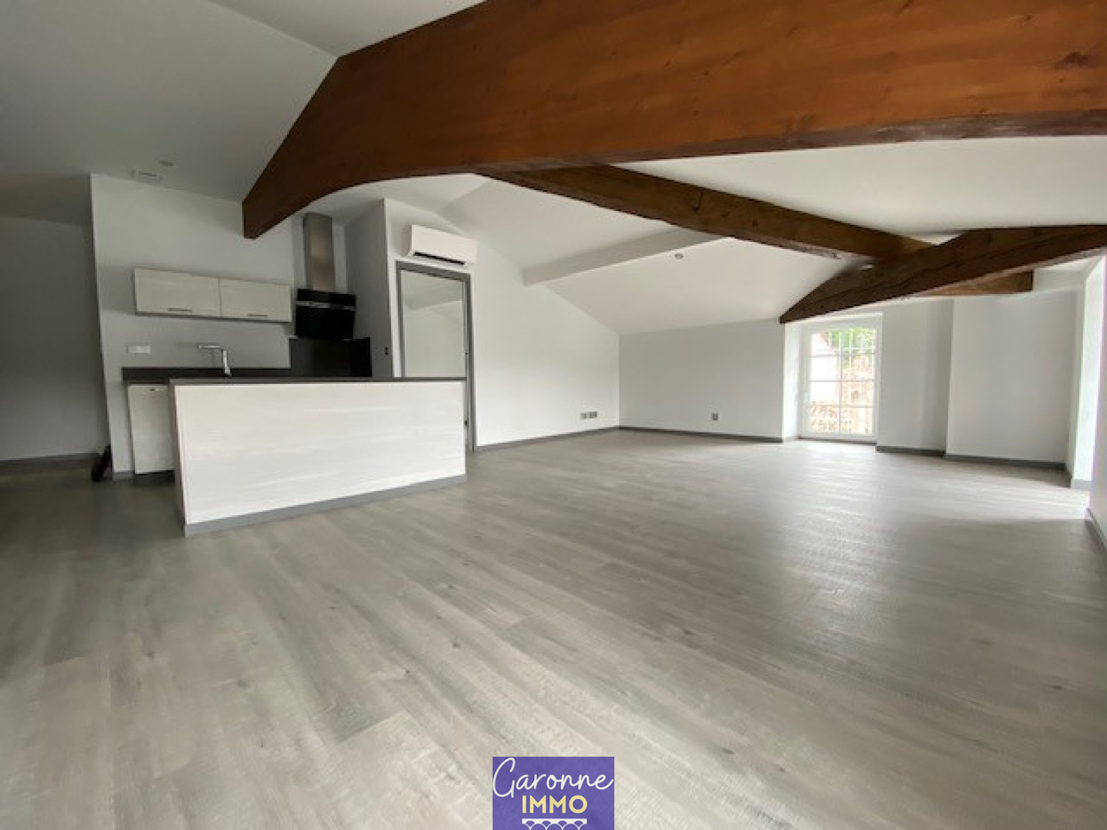 Composé d'une entrée avec placard, une pièce de vie avec cuisine ouverte avec ilot central entièrement équipée (hotte, plaque, four, lave vaisselle et frigo), une chambre, une salle d'eau avec WC.