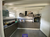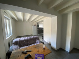 Maison de village d'une superficie de 72m² mitoyenne d'un côté, comprend au rez-de-chaussée : une entrée, salon/séjour ouvert sur le coin cuisine équipée (plaques, hotte) avec un cellier et un WC.