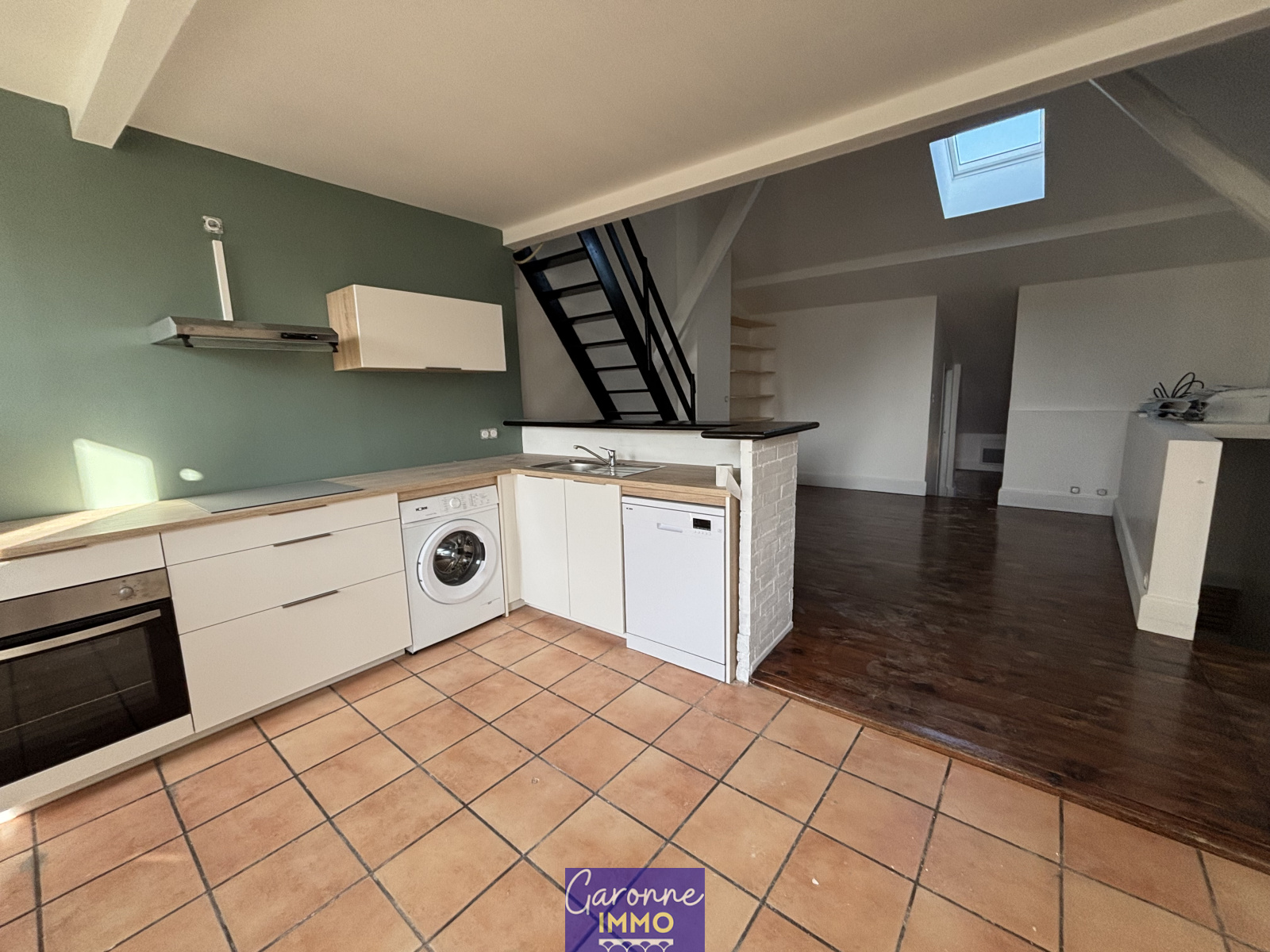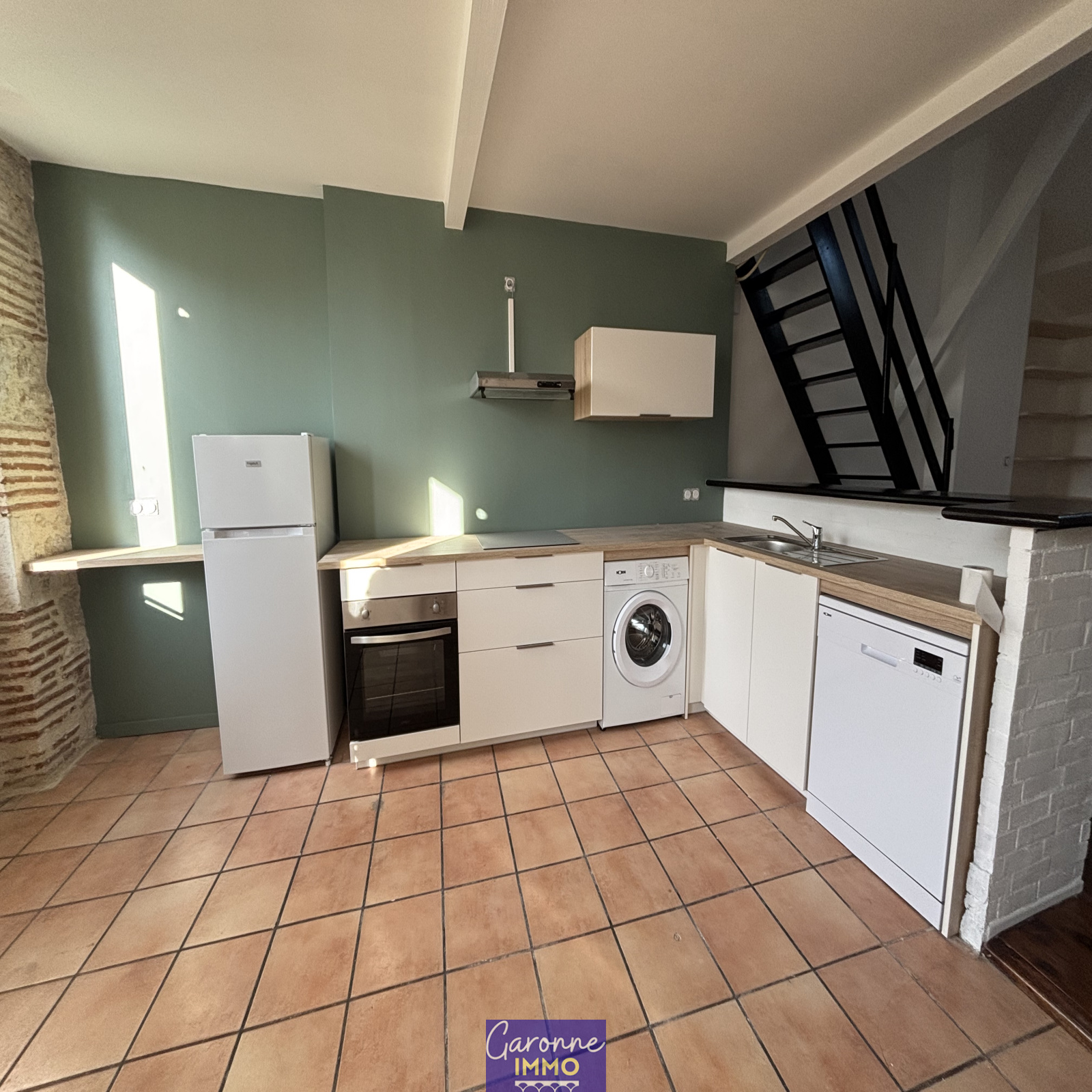 Elle se compose au rdc : une entrée, au premier étage : une chambre, au deuxième étage : une cuisine entièrement équipée (hotte, plaque, four, lave-vaisselle, réfrigérateur et machine à laver), une pièce de vie, un bureau et une salle d'eau avec WC puis au troisième et dernier étage, une chambre.