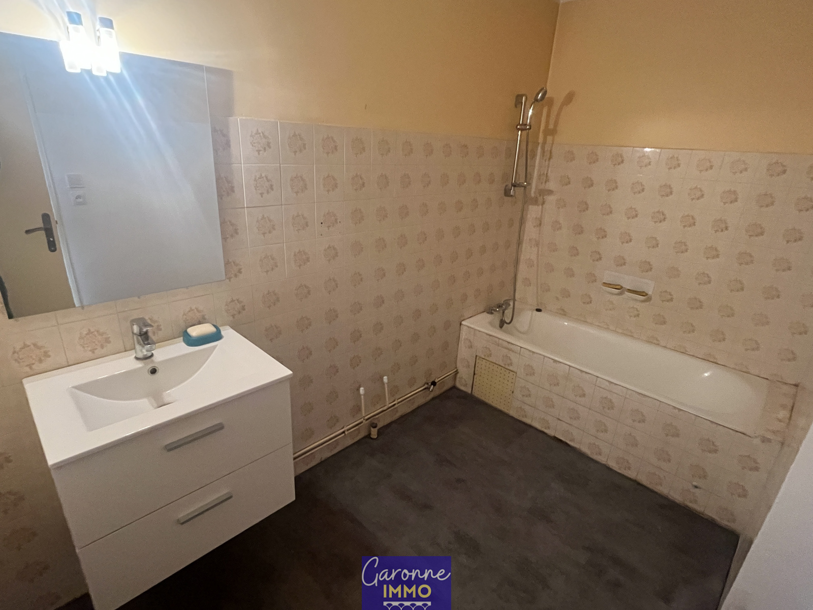 Appartement situé à proximité du centre ville et de la gare de Tonneins, dans une résidence sécurisée avec ascenseur. L'appartement de type 2 comprend une entrée, salon/séjour avec coin cuisine équipée, une chambre, salle de bains, WC et balcon ; cellier en sous-sol de la résidence.