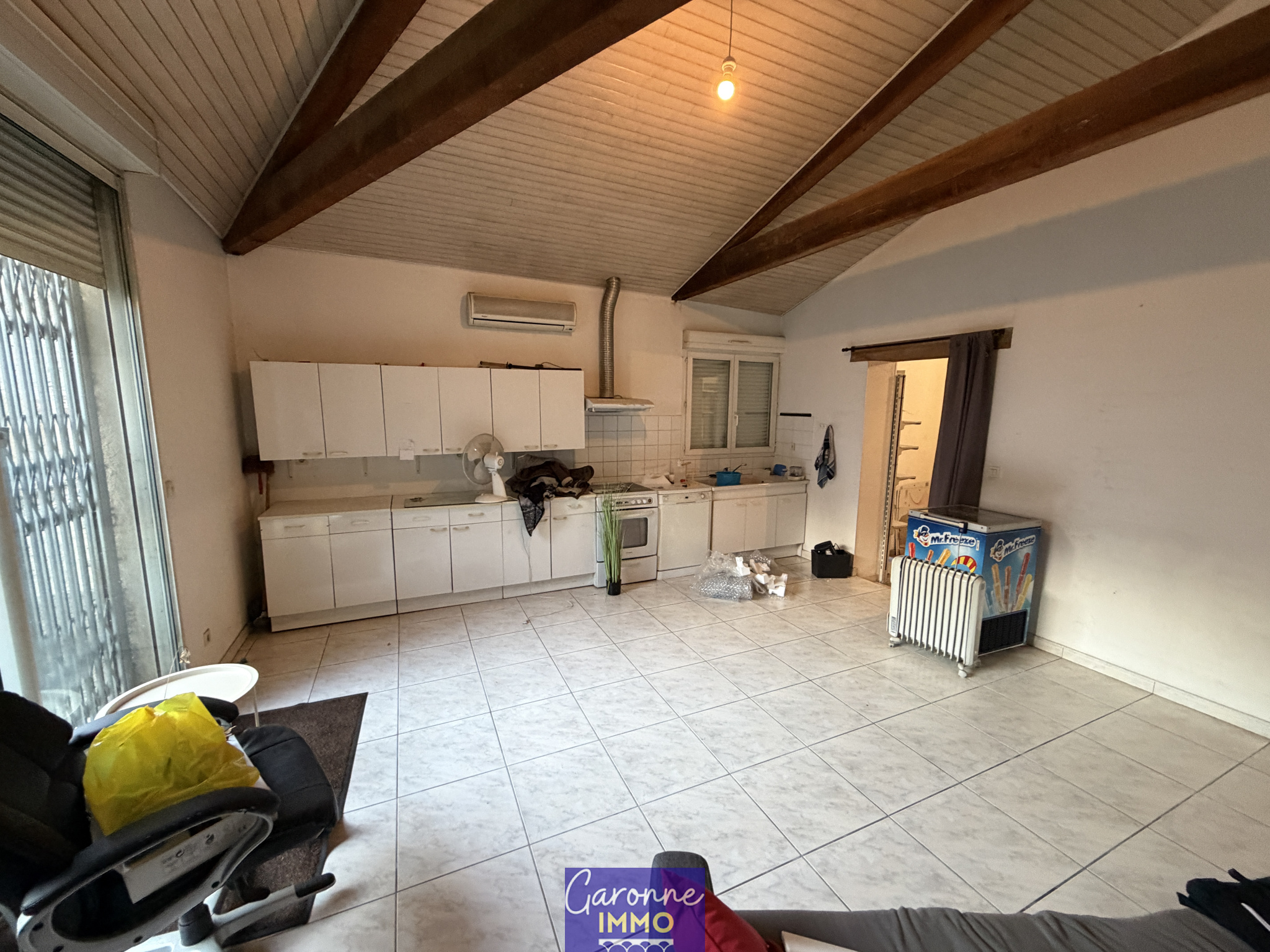 - Composition : Au rez-de-chaussée : entrée, pièce de vie de 27 m² avec accès à un jardin de 30 m², climatisation réversible. À l’étage : couloir, deux grandes chambres, salle d’eau.