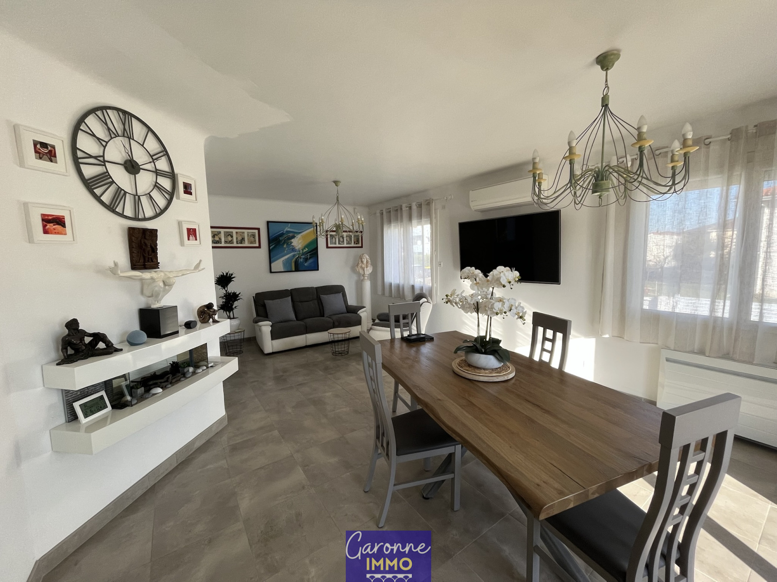 VENDU ! EXCLUSIVITE ! AFFAIRE RARE. Maison de plein pied sur sous sol semi enterré entièrement rénovée avec goût . Le bien comprend en rez-de-chaussée un salon séjour, une cuisine séparée équipée, 3 chambres, une salle d'eau, wc et terrasse couverte ; au sous-sol une pièce améngée de 25 m² avec coin dressing, une salle de bains avec wc, cellier et garage. Clim reversible, portail électrique, menuiserie PVC... le tout sur un terrain clos de 679 m². Quartier calme et agréable, coup de coeur assuré