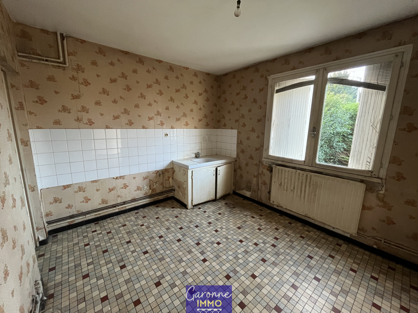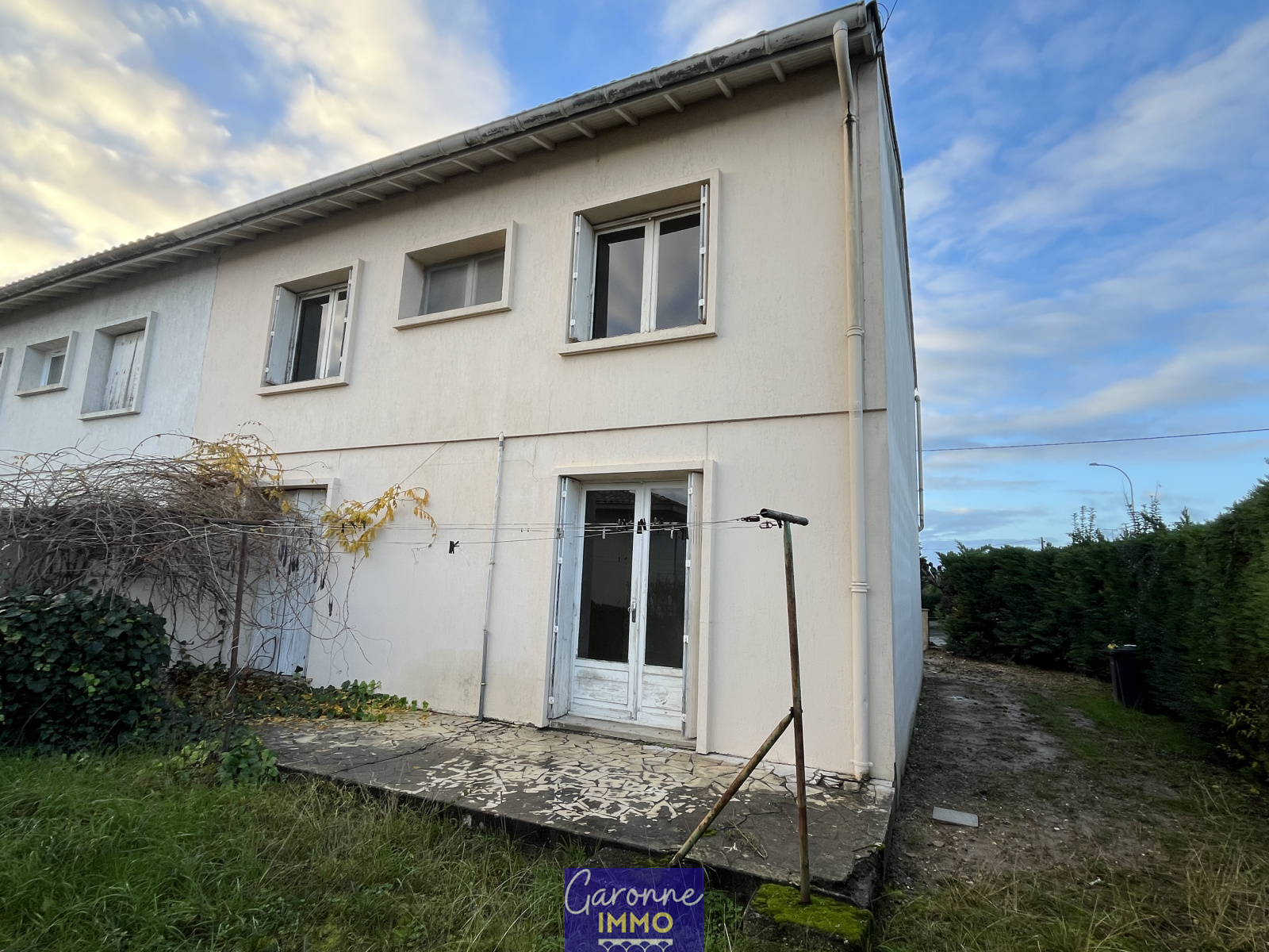 EXCLUSIVITE - située à proximité du centre-ville de TONNEINS à quelques pas du collège, maison de type 5 à rénover. Elle comprend en rez-de-chaussée une entrée, salon/séjour, cuisine, cellier, WC et garage ; à l'étage un palier desservant 4 chambres dont une avec balcon, salle de bains et WC. Chauffage central au gaz de ville, raccordé au réseau d'assainissement collectif (neuf), terrasse... le tout sur un terrain clos de 327 m². Idéal pour une 1ère acquisition.