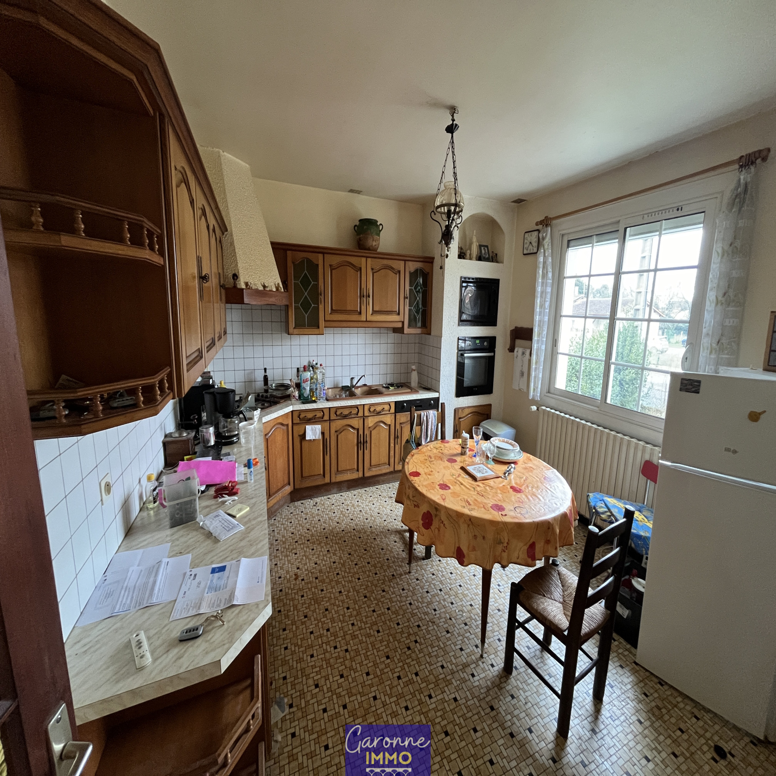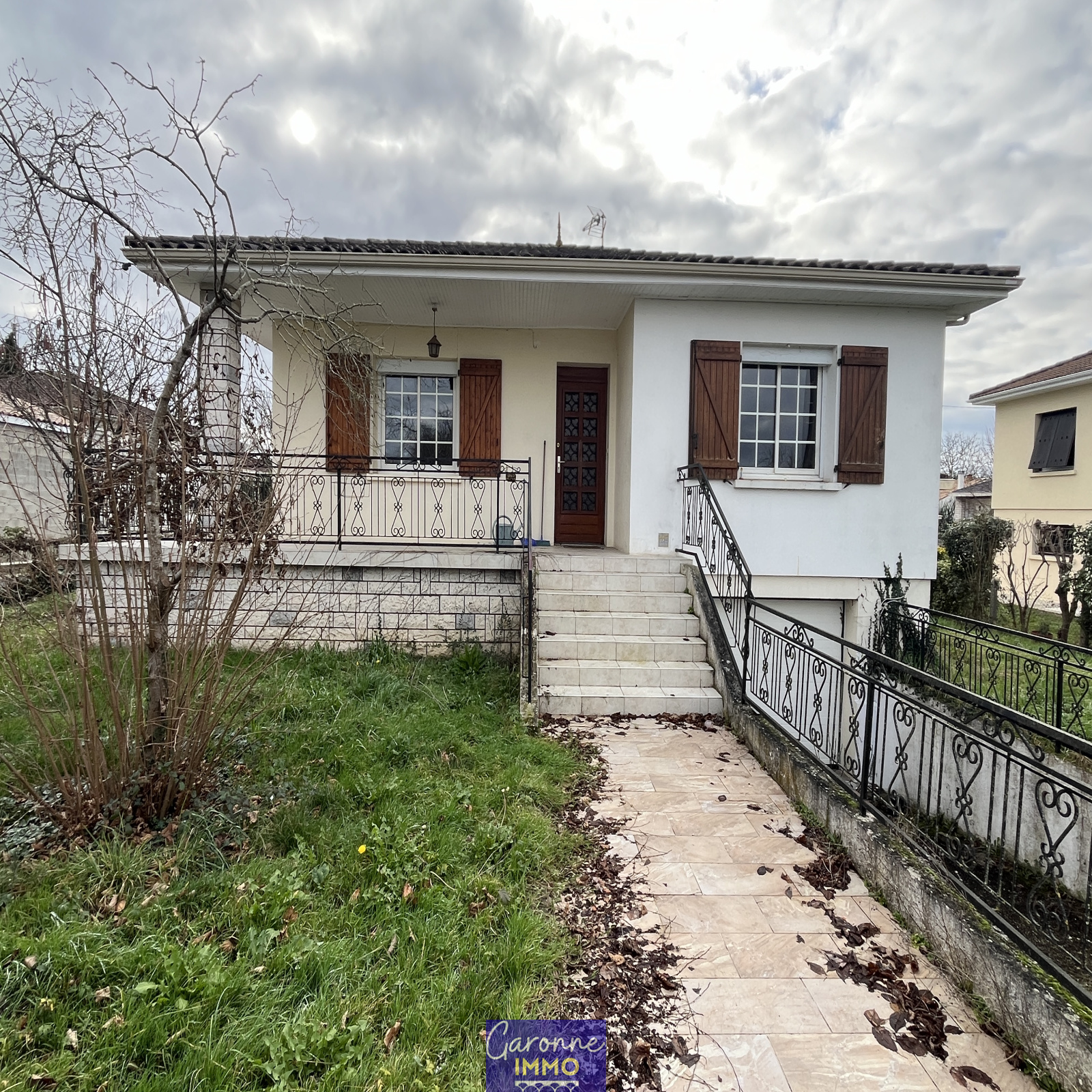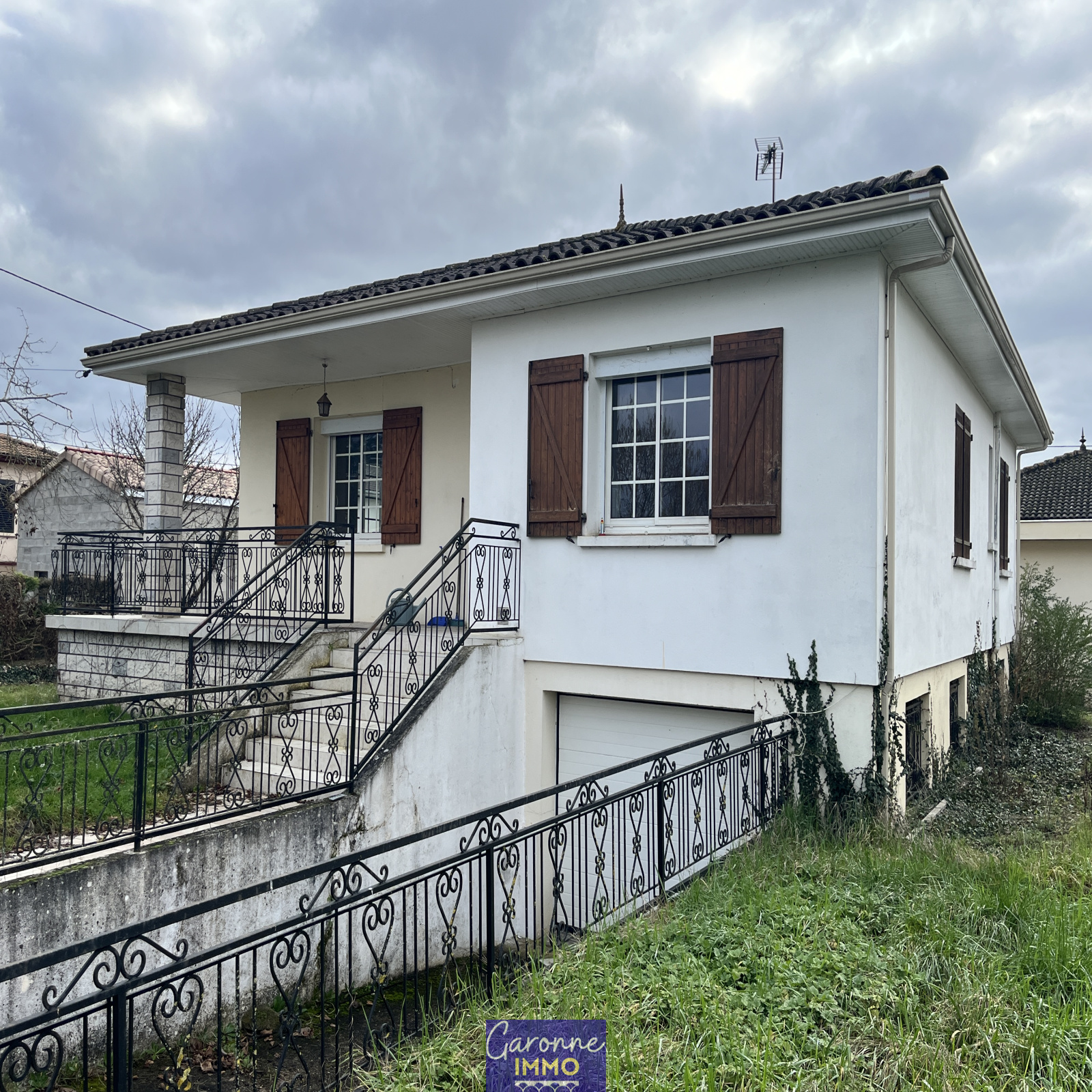 EXCLUSIVITE - Maison sur sous-sol semi enterré de construction traditionnelle située dans un quartier calme à proximité du centre de Tonneins. Elle comprend une entrée, salon/séjour donnant sur terrasse, cuisine équipée, 3 chambres, salle d'eau et WC ; en sous-sol un garage, 2 pièces et bureau. Menuiseries double vitrage, portail garage électrique, chauffage central au fuel... le tout sur un terrain arboré et clos de 566 m².