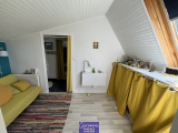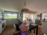 Le bien se compose en rez-de-chaussée d'une entrée, une cuisine lumineuse et moderne de 27m² ouverte sur la salle à manger, salon de 31m² avec cheminée ouverte, 3 chambres, une salle de bains et un wc ; à l'étage une chambre, une salle d'eau avec wc et un bureau ; deux garages attenants de 35m² et 24m², coin buanderie et cave.