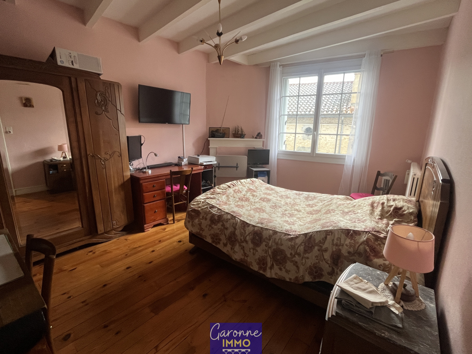 Toiture neuve, menuiseries double vitrage, chauffage central gaz (chaudière à condensation), portail de garage électrique.