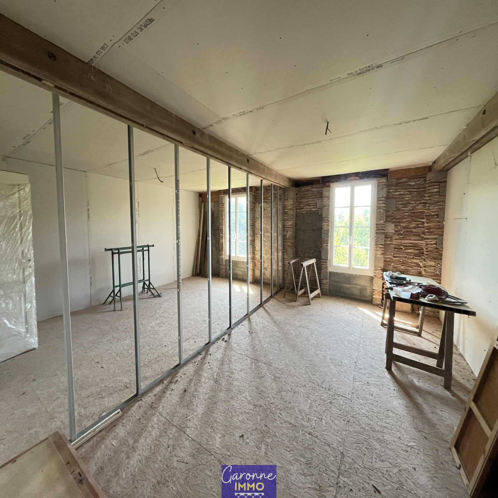 La maison offre deux niveaux de 300 m² chacun, avec une cave. Une partie de 130 m² a été entièrement rénovée, tandis que l'autre partie, nécessitant encore des travaux de second œuvre, offre un potentiel exceptionnel pour de nombreux projets : grande famille, gîtes, réceptions... A l'extérieur, un parc arboré de 8500m² avec une dépendance de type pigeonnier, abri voiture et accès direct à la Garonne.