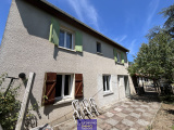 Maison de construction traditionnelle comprenant en rez-de-chaussée un salon/séjour avec poêle à granules, cuisine équipée, cellier-buanderie et WC ; à l'étage un palier desservant 3 chambres, salle de bains et WC. Garage indépendant, chauffe-eau solaire, panneaux photovoltaïques... le tout sur un terrain clos de 503 m².