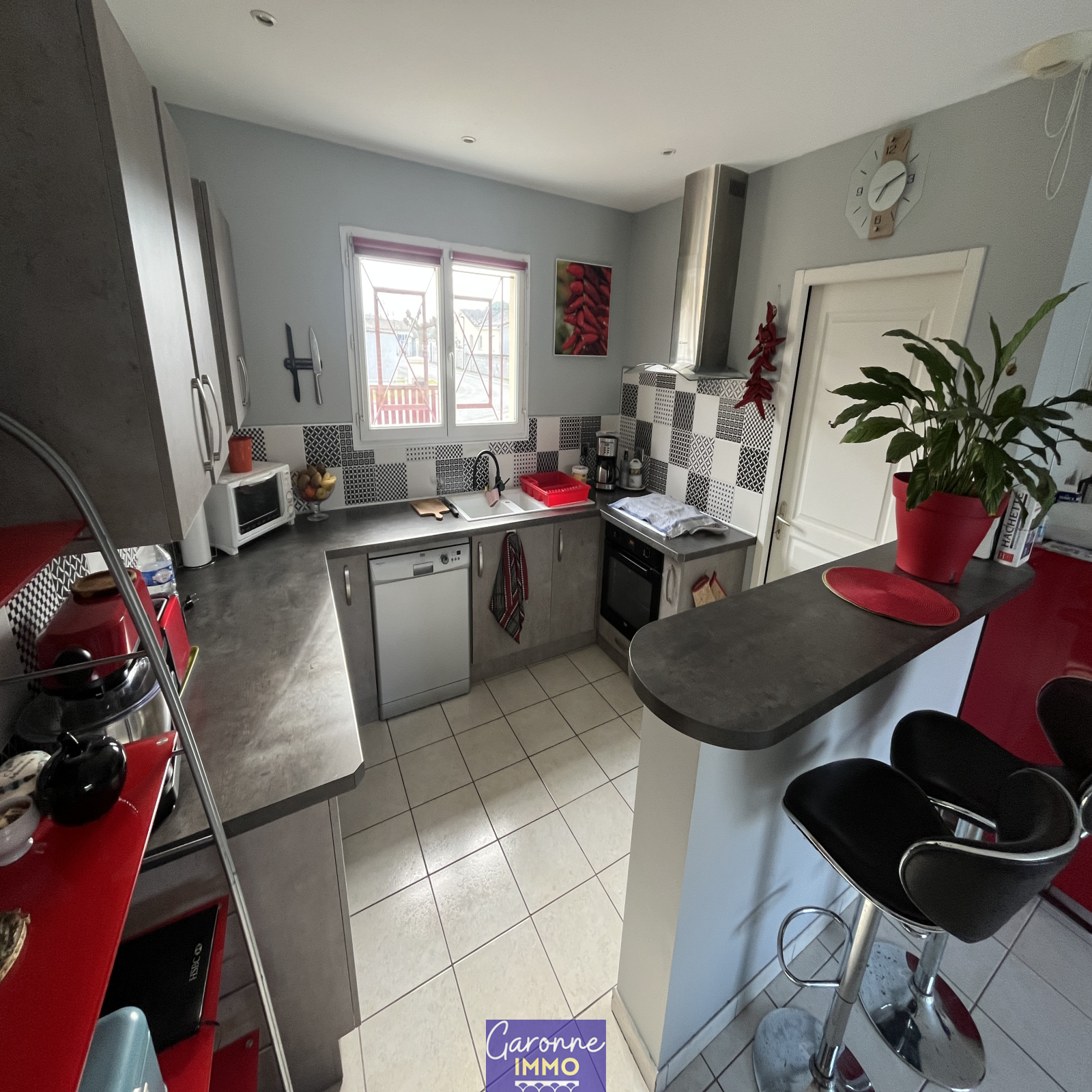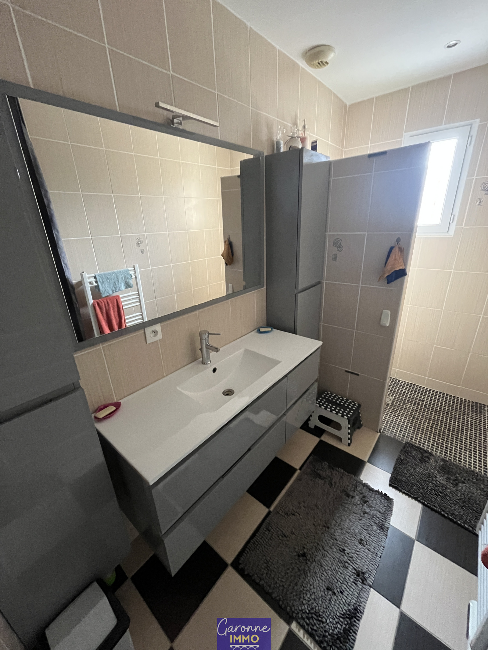 Elle offre un espace de vie lumineux avec un salon/séjour ouvert sur une cuisine équipée et sa buanderie. La partie nuit comprend trois chambres avec placards intégrés, une salle d’eau et un WC séparé.