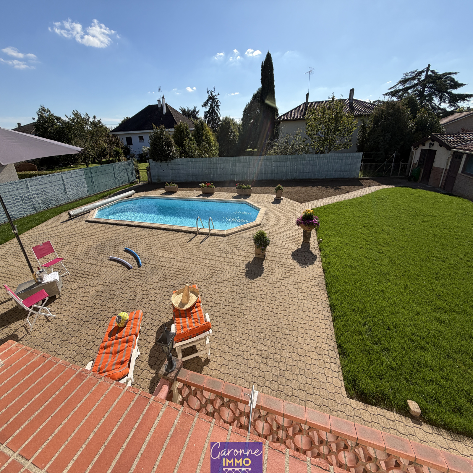 Elle comprend à l'étage une entrée, salon/séjour avec cheminée et clim, cuisine équipée, 3 chambres, salle de bains et WC séparé. Le sous-sol total offre un garage double, une cuisine d'été, une chambre supplémentaire ainsi qu'un espace buanderie-chaufferie. A l'extérieur vous profiterez d'une piscine avec terrasse et douche, d'un garage une voiture avec fosse, d'un atelier, le tout sur un terrain clos de 1 113 m² agrémenté d'un puits, d'un arrosage intégré et d'un portail électrique.