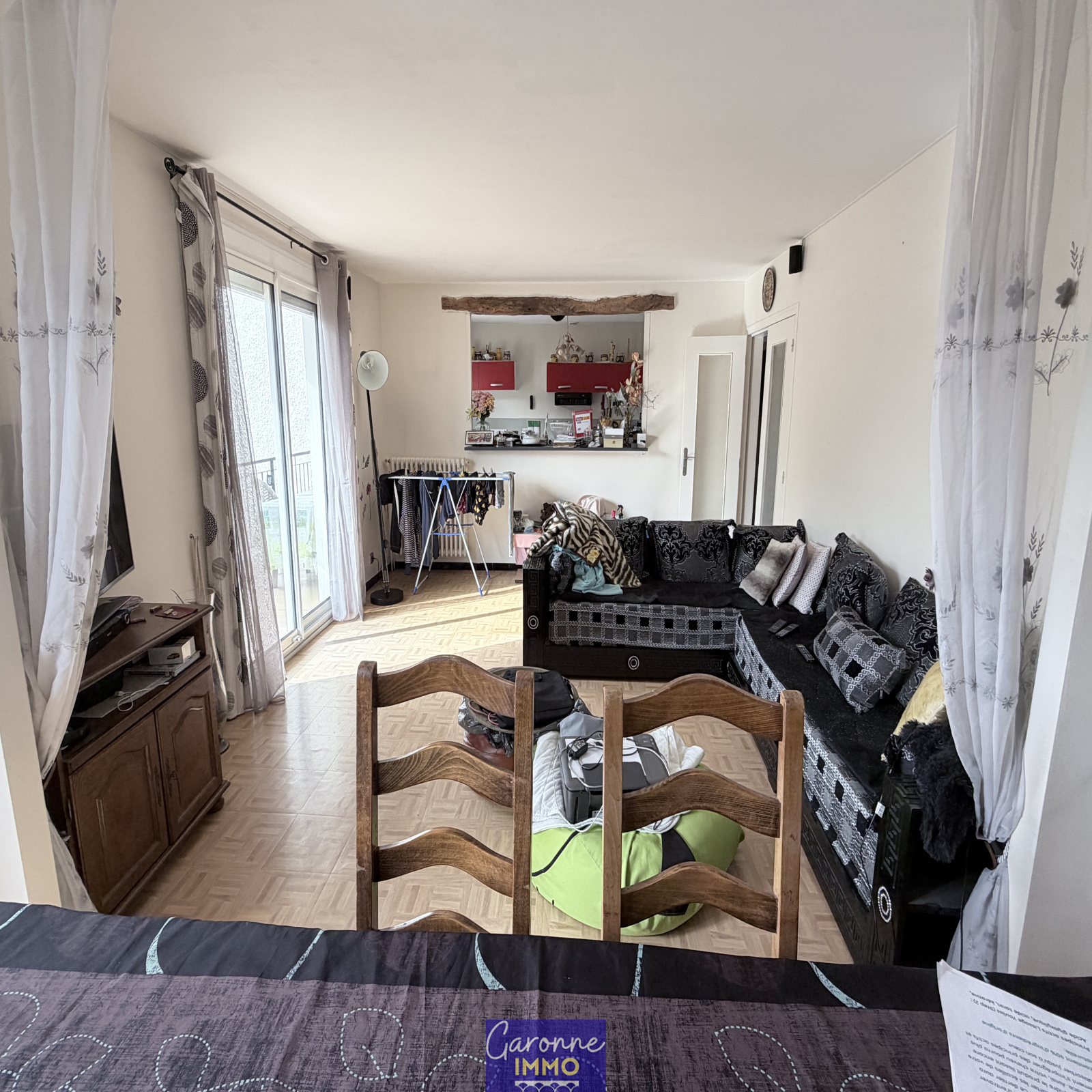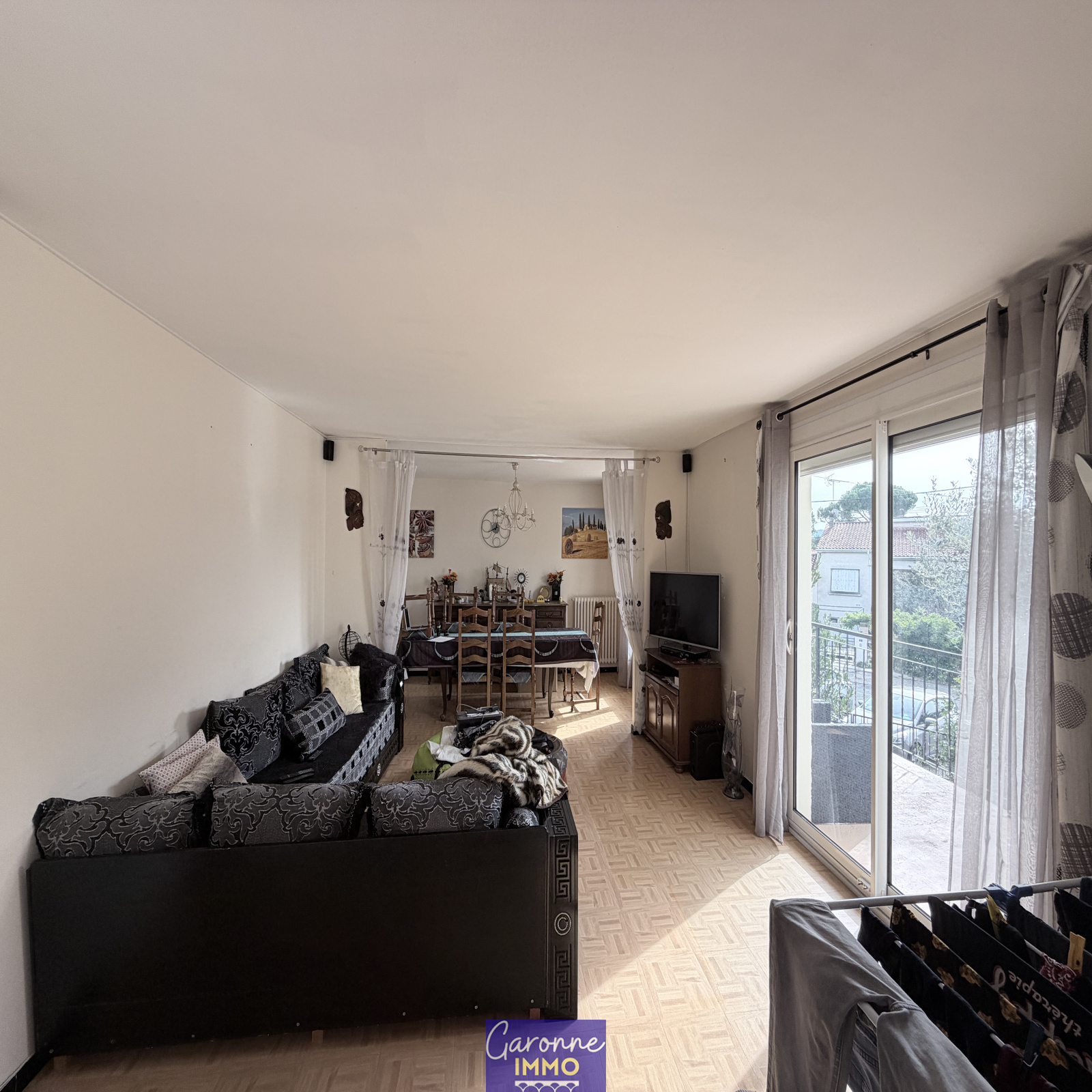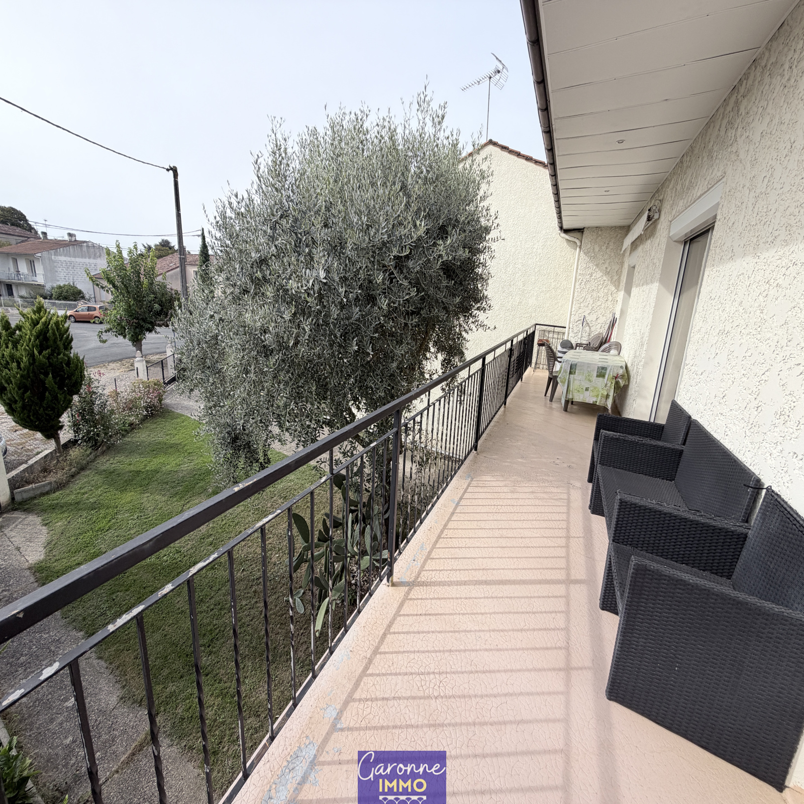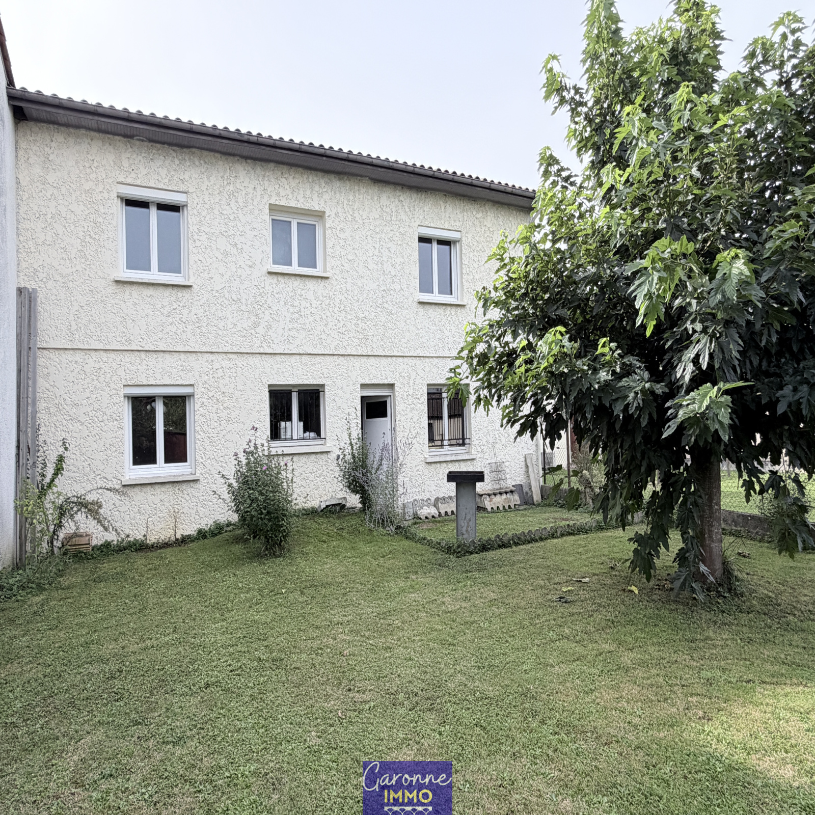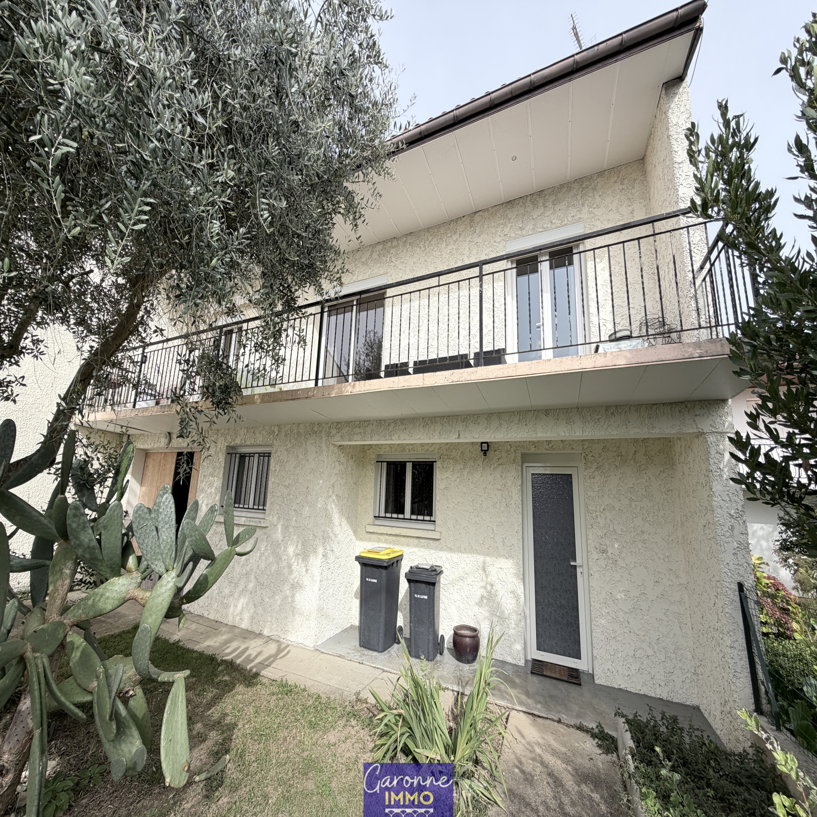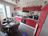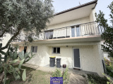 Elle est composée en rez-de-chaussée d'une grande entrée, de deux pièces et d'un garage avec coin buanderie. A l'étage un palier dessert un salon/séjour et une cuisine aménagée tous deux donnant un balcon terrasse, deux chambres, une salle de bains, un cellier et un WC. Le tout sur un jardin clos et arboré de 486 m².