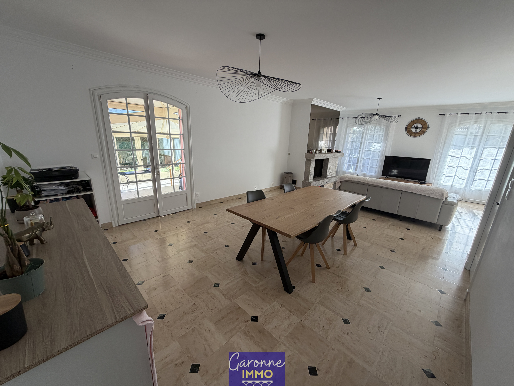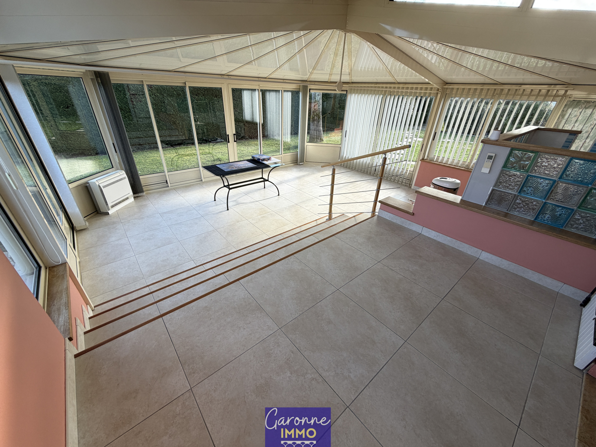 Elle comprend en rez-de-chaussée une entrée, un grand salon/séjour de 50 m² avec cheminée donnant sur une véranda de 40 m², une cuisine équipée, un couloir avec de nombreux rangements, trois chambres, une salle de bains avec douche, baignoire et WC, et un WC. Au sous-sol vous disposerez d'une entrée indépendante donnant sur deux pièces ainsi qu'un garage de 130 m². Côté extérieur un jardin arboré et clos de 1250 m² avec puits, arrosage intégré et portail électrique.
