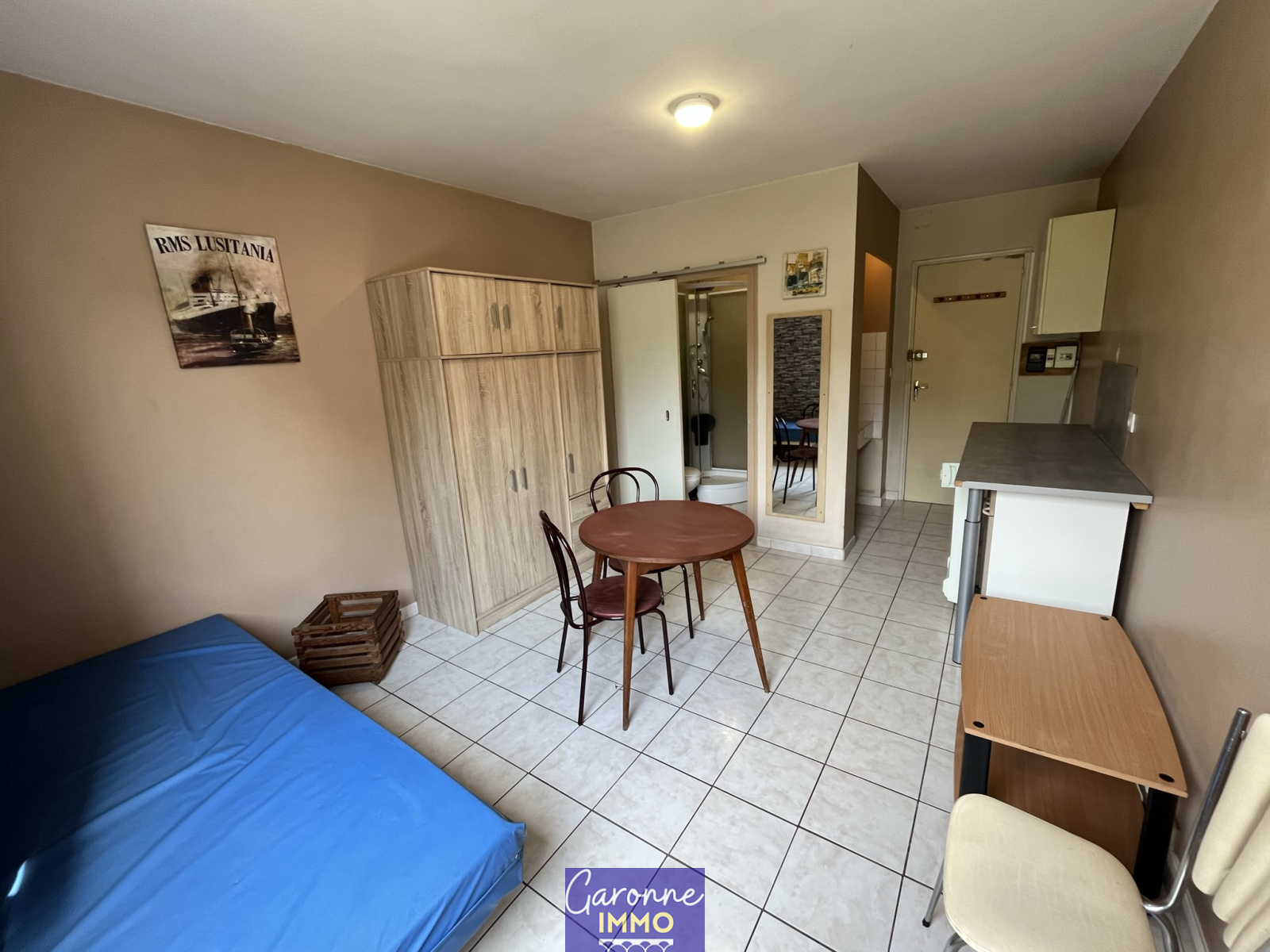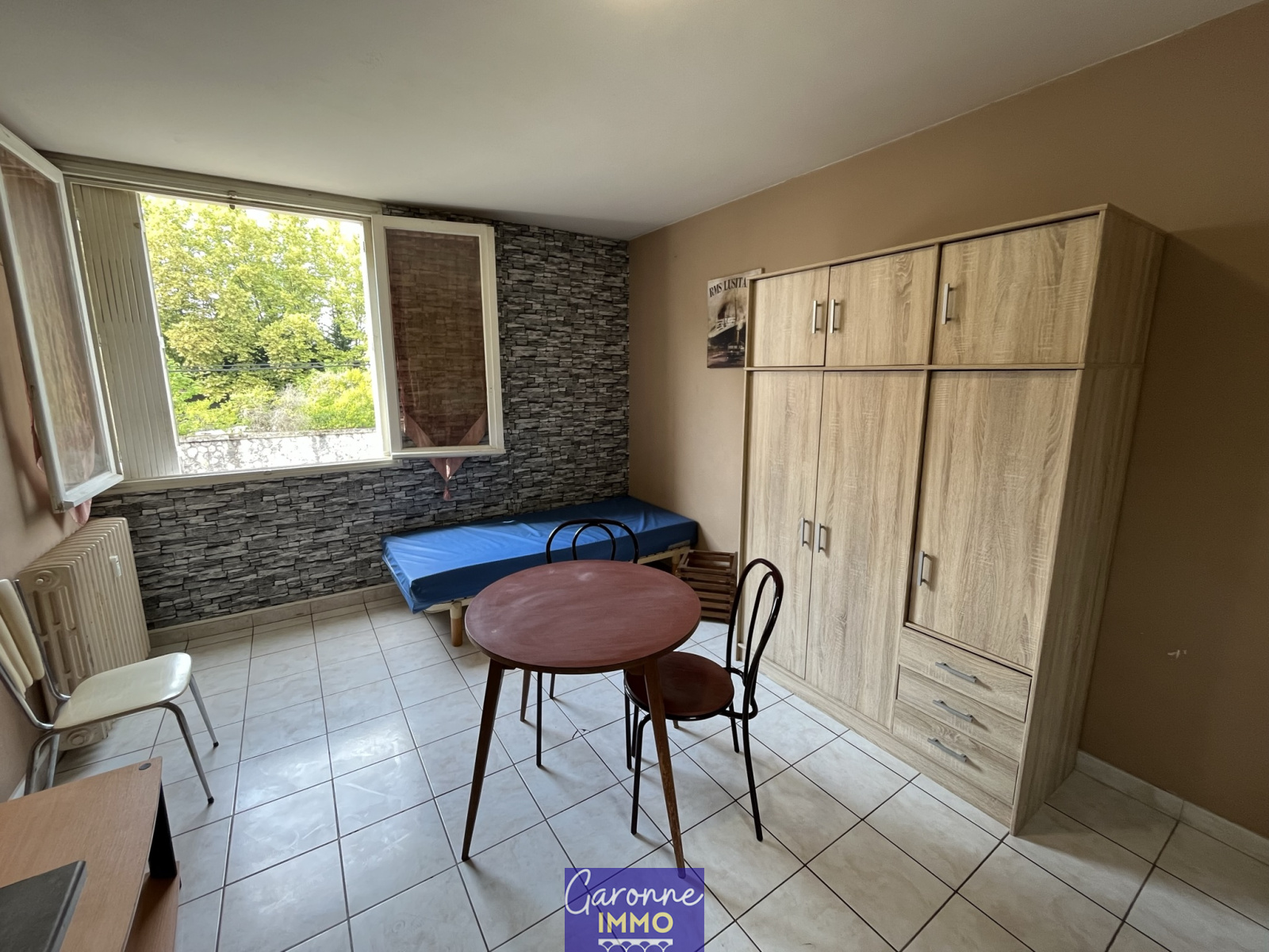 Dans résidence sécurisée, à proximité de la gare à Tonneins, un studio au premier étage vendu meublé de 18m² qui se compose d'une pièce principale avec coin cuisine équipée, une salle d'eau avec WC. Potentiel locatif de 230€ HC.