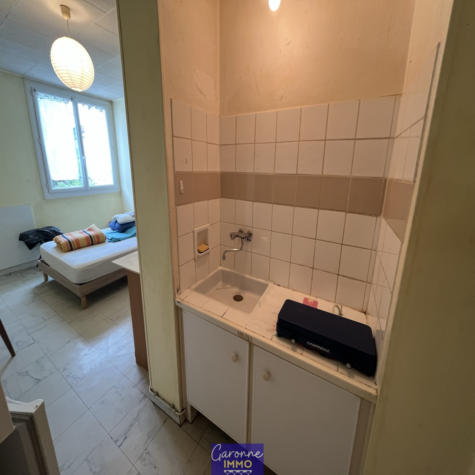 Dans résidence sécurisée, à proximité de la gare à Tonneins, un studio au premier étage vendu meublé de 18m² qui se compose d'une pièce principale avec coin cuisine équipée, une salle d'eau avec WC.