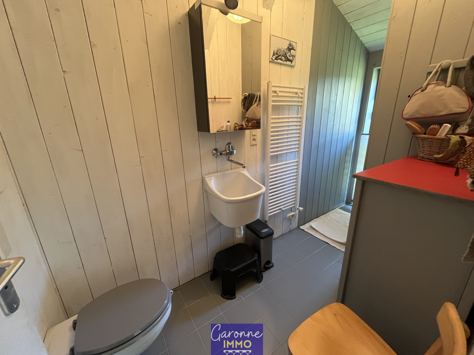 - À l’étage : Une chambre, un bureau, une salle d’eau avec WC.