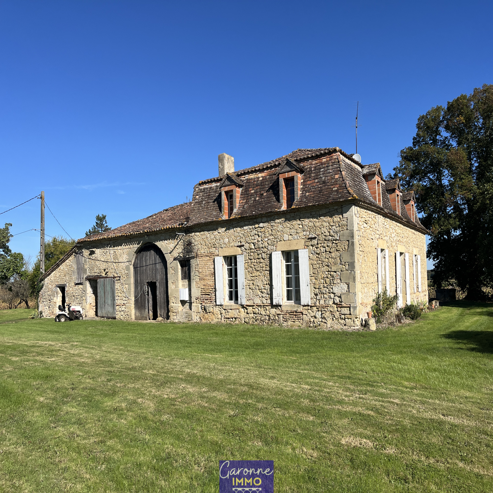 La propriété est desservie par un chemin privé, en retrait d’une route communale. Vous profiterez d’un hectare de terrain arboré, agrémenté d’arbres fruitiers. L’ensemble comprend également un séchoir à rénover, un double garage indépendant, un puits ainsi qu’une borne d’irrigation.