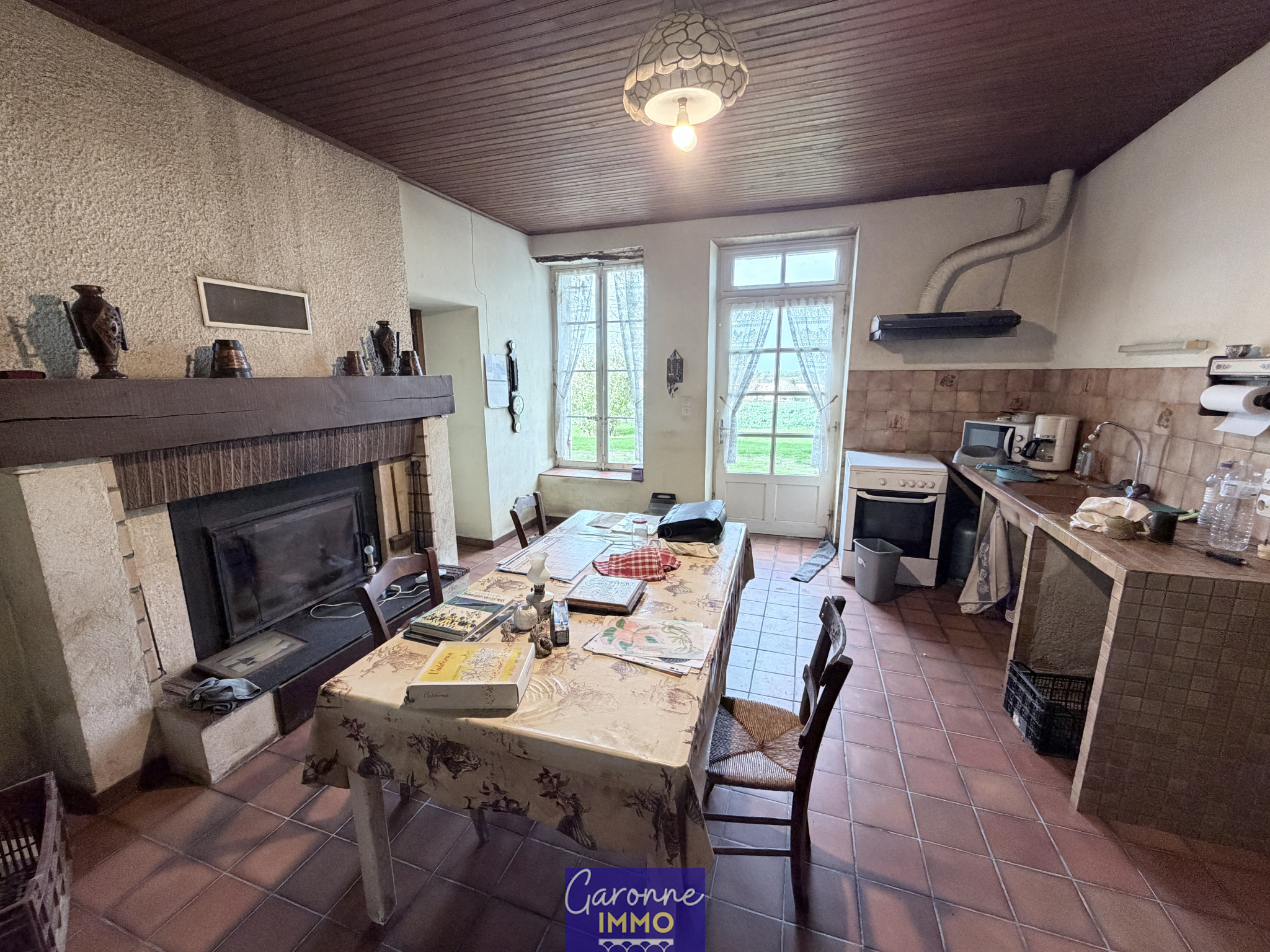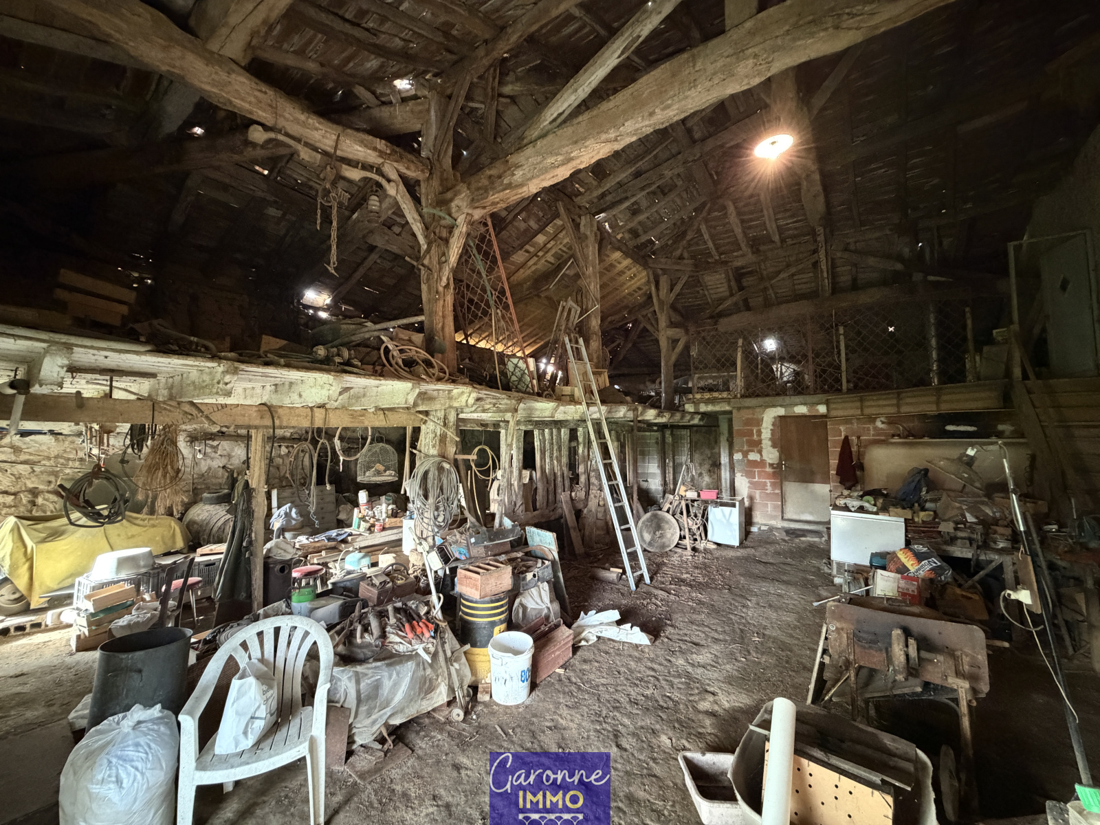 Une rénovation complète est à prévoir (toiture, chauffage, électricité, menuiseries, aménagements intérieurs, assainissement), mais les matériaux nobles déjà présents, dont les poutres en chêne et les murs en pierres, ainsi que les grandes ouvertures déjà présentes constituent une base idéale pour une restauration.