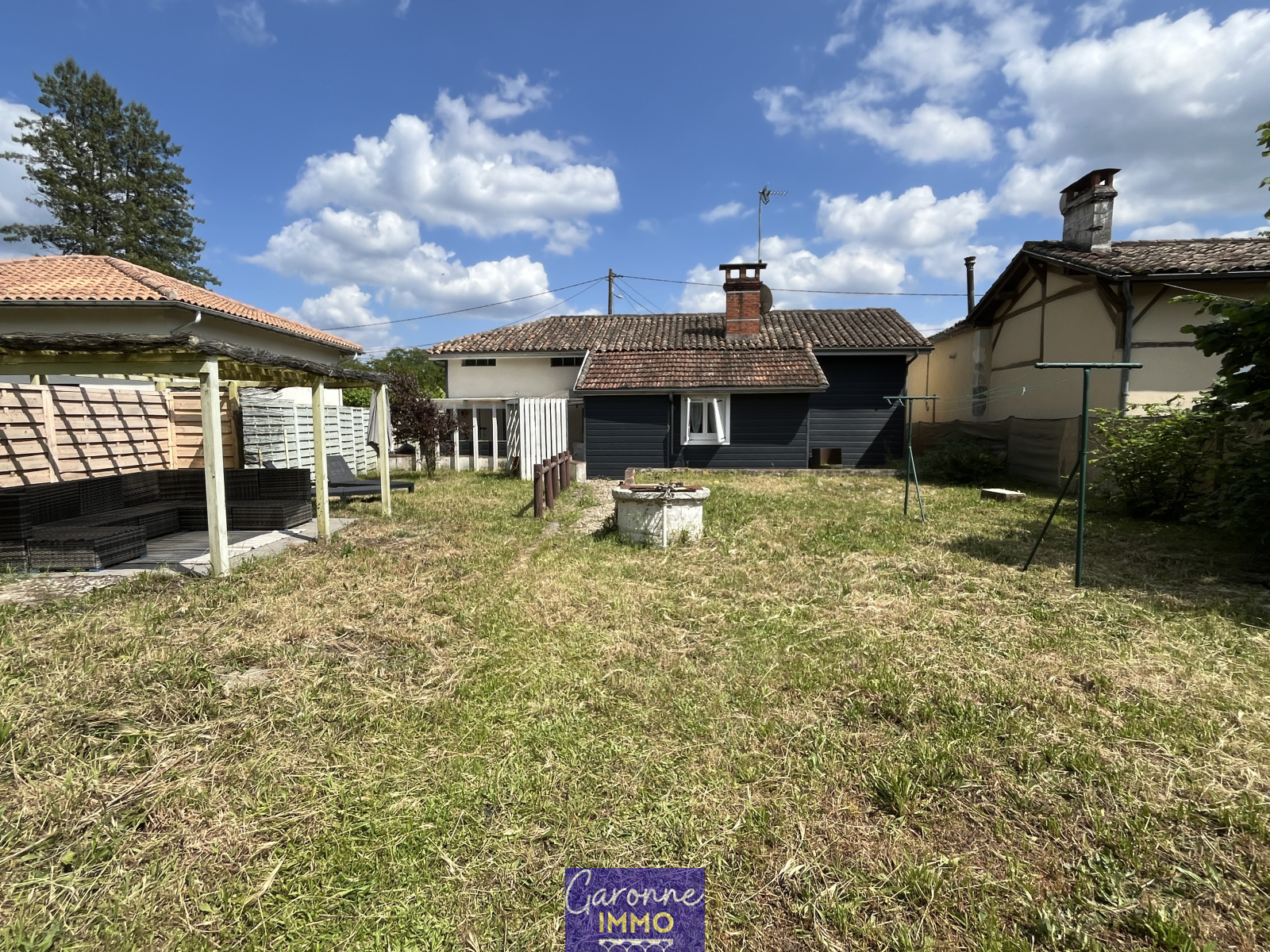 IDEAL INVESTISSEUR - Située à 15mn de CASTELJALOUX dans une rue calme, découvrez cette maison de plain-pied avec garage, jardinet dépendance. Le bien dispose d'un salon/séjour de 24m² équipé d'un insert à bois, une cuisine de 17m² desservant une terrasse couverte, de deux chambres, d'une salle d'eau, wc, garage attenant, dépendance de 30m² et jardin autour de 822m² avec puits.