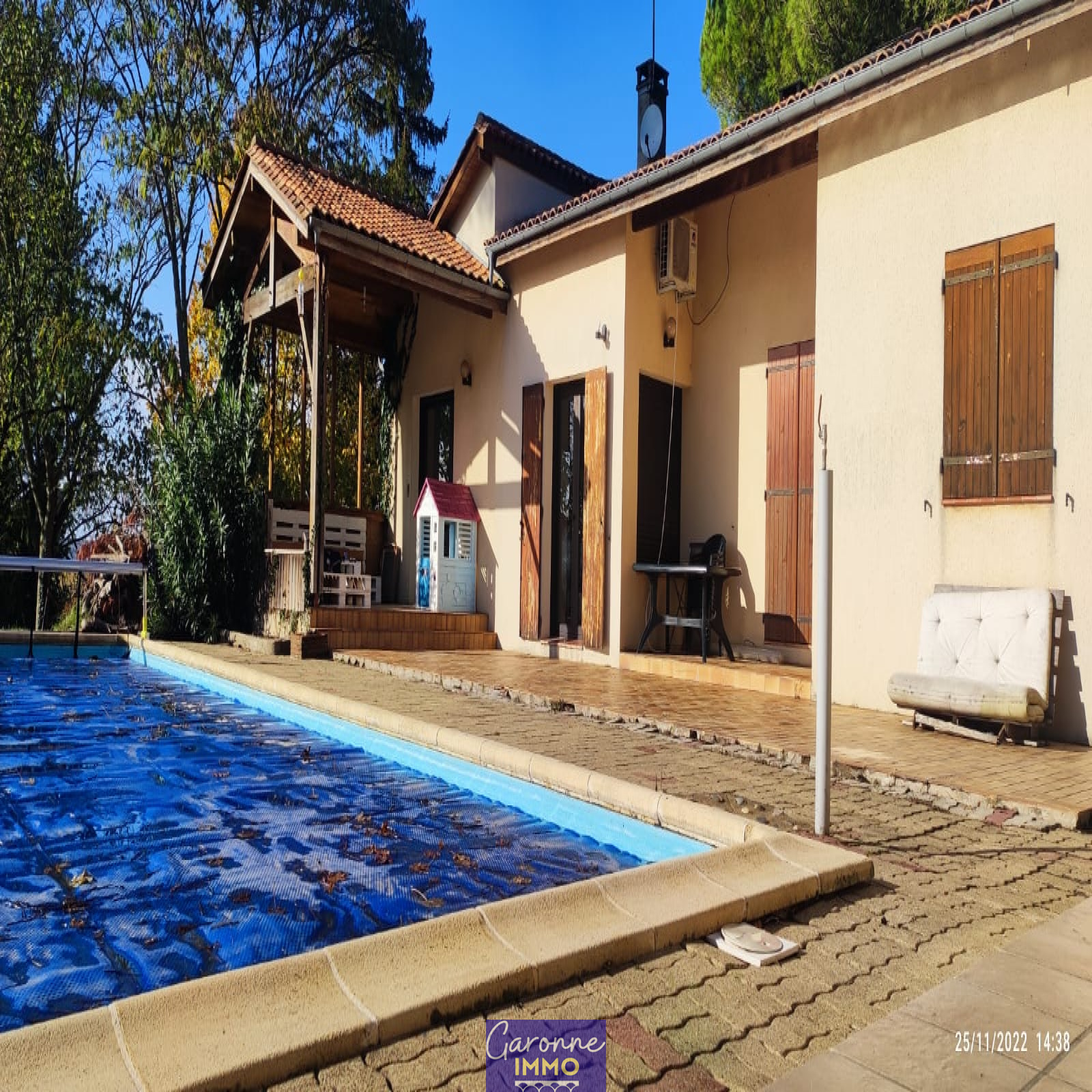 Située sur les hauteurs d’Aiguillon, à 2mn des commodités et à mi-chemin entre Marmande et Agen, laissez vous charmer par cette magnifique maison d’architecte des années 90.