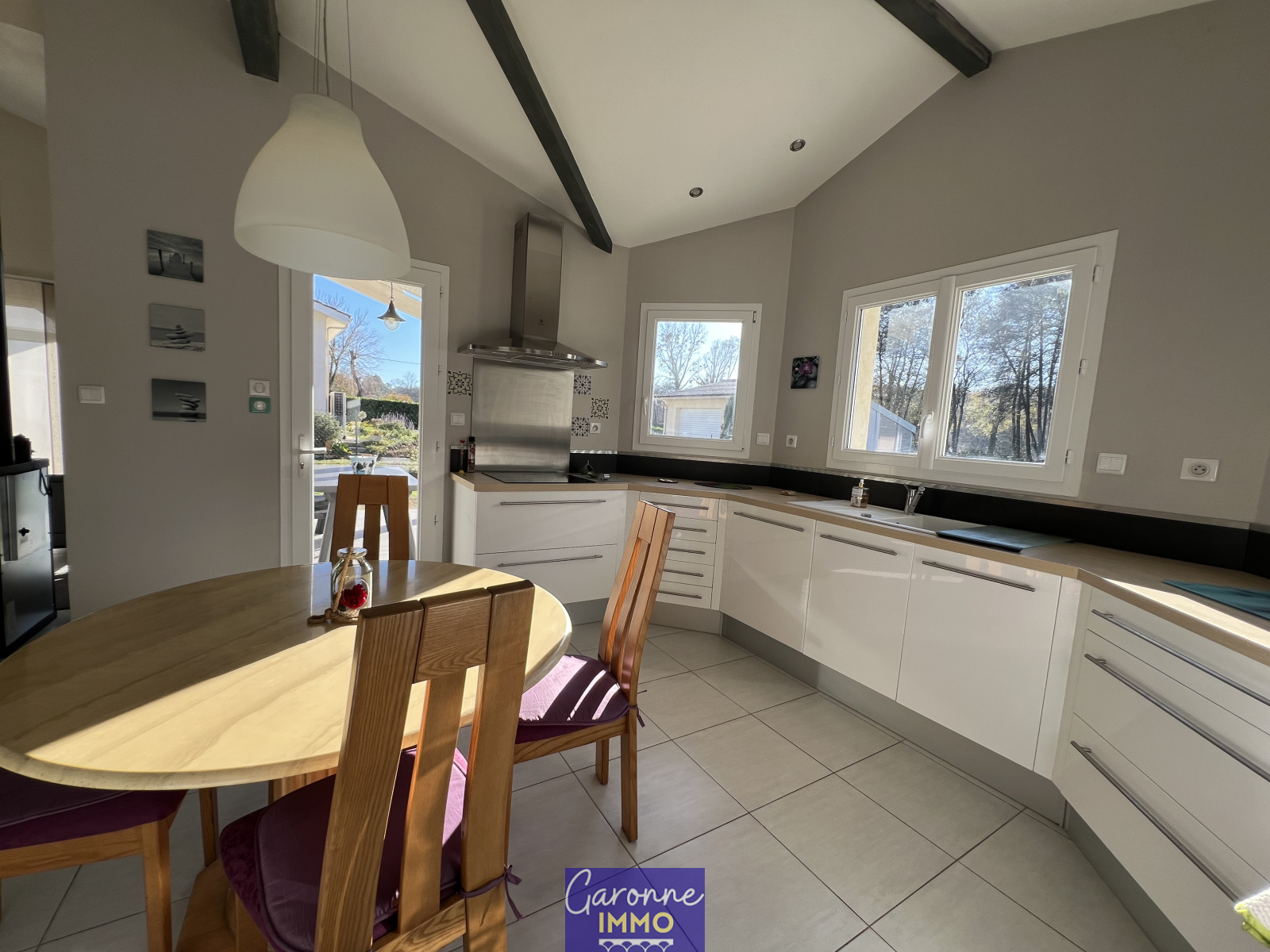 Découvrez cette maison de 120 m² offrant confort et luminosité. Elle se compose de 2 chambres, un salon-salle à manger avec cuisine ouverte, un dressing, un cellier et une mezzanine. Le chauffage au sol et un poêle à bois assurent une ambiance chaleureuse. Profitez d’une belle terrasse couverte donnant sur un terrain clos de 2400 m². De grandes baies vitrées apportent une lumière naturelle exceptionnelle. Un cadre de vie idéal, à visiter sans tarder !