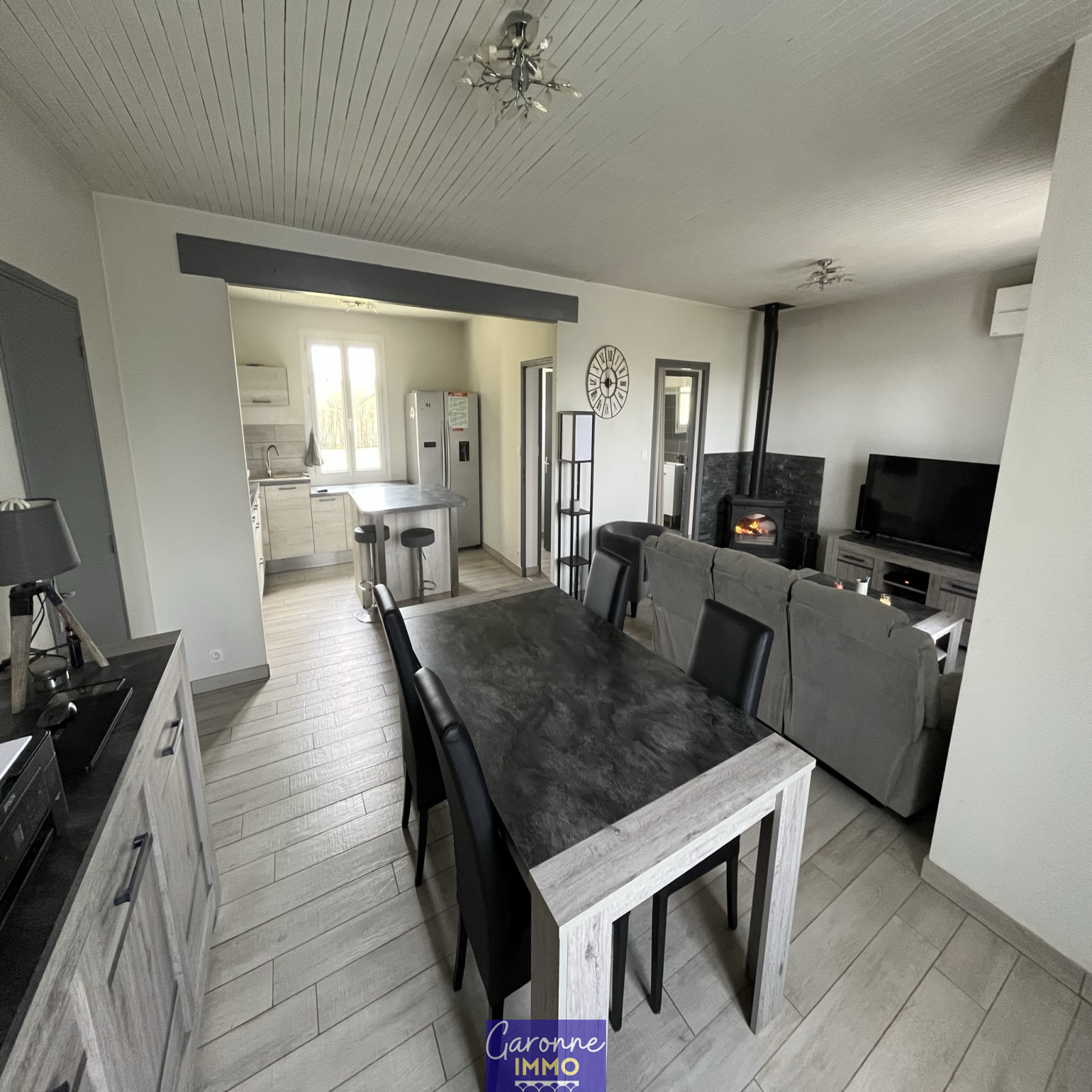 EXCLUSIVITE - Maison de plain-pied comprenant un salon/séjour ouvert sur cuisine équipée, deux chambres, salle d'eau et WC. Chauffage par clim réversible et poêle à bois, menuiseries PVC, garage attenant... le tout sur un terrain en partie boisé de 6 491 m². Environnement calme et agréable, à visiter sans tarder