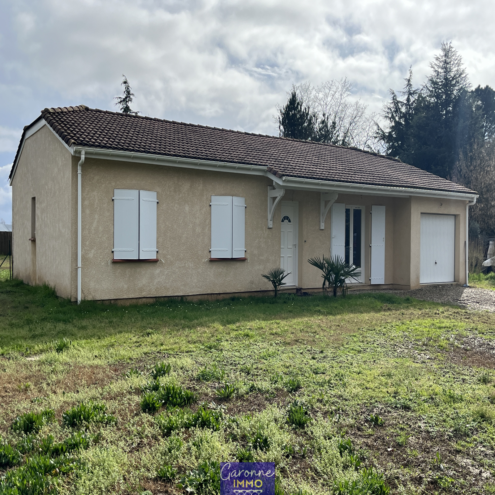 Découvrez cette maison de plain-pied de 2002 située en campagne sur l'axe TONNEINS - DAMAZAN. Elle comprend un salon/séjour, cuisine, 3 chambres, salle de bains, WC, garage attenant avec coin buanderie et terrasse, le tout sur un terrain de 2 327 m². Environnement calme et agréable, à visiter sans tarder.
