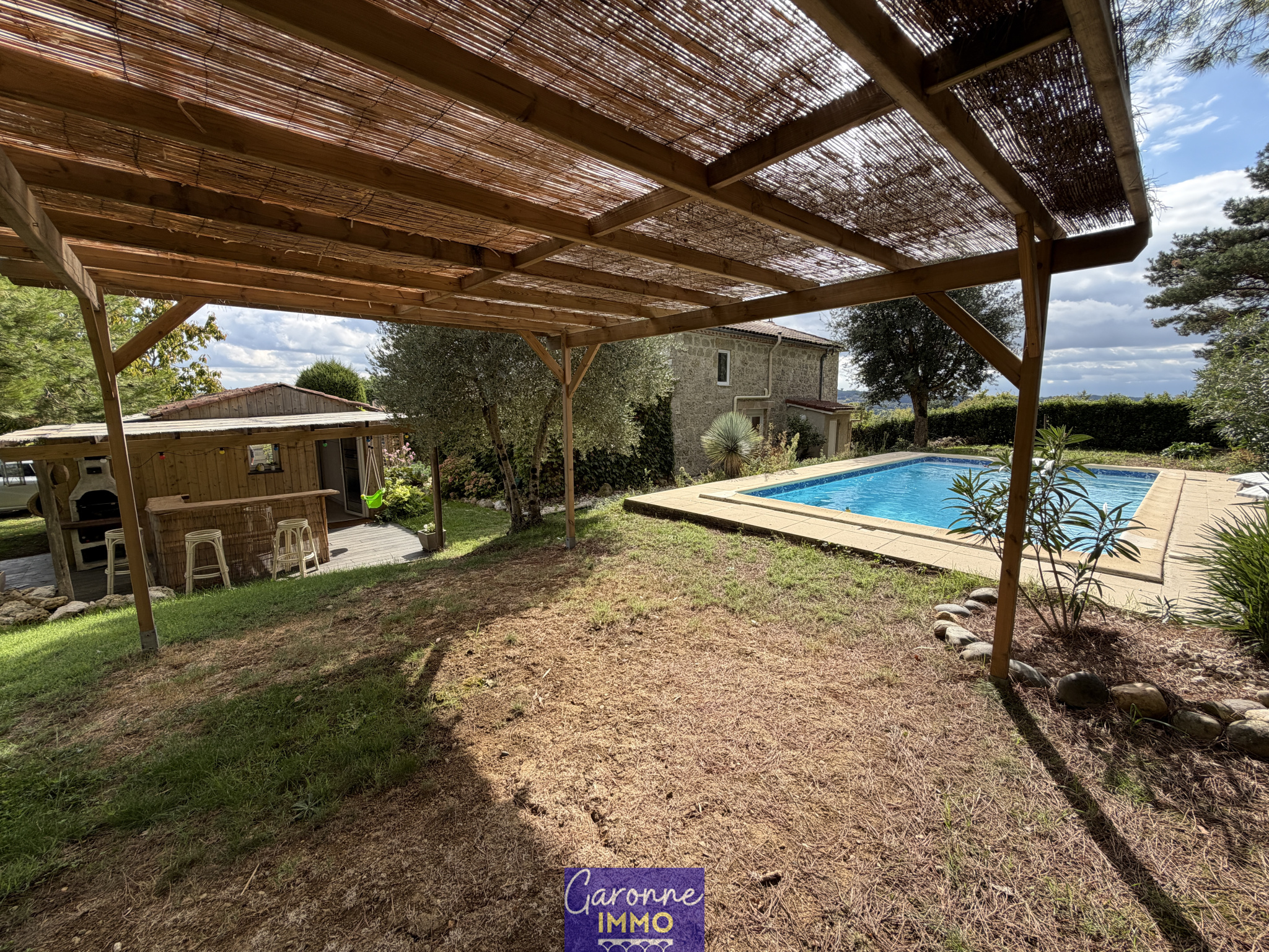 Venez découvrir cette charmante maison en pierre, rénovée avec soin, située à seulement 15 min d'AGEN. Sans être isolée, elle offre un environnement calme et agréable avec une vue dégagée sur la campagne.