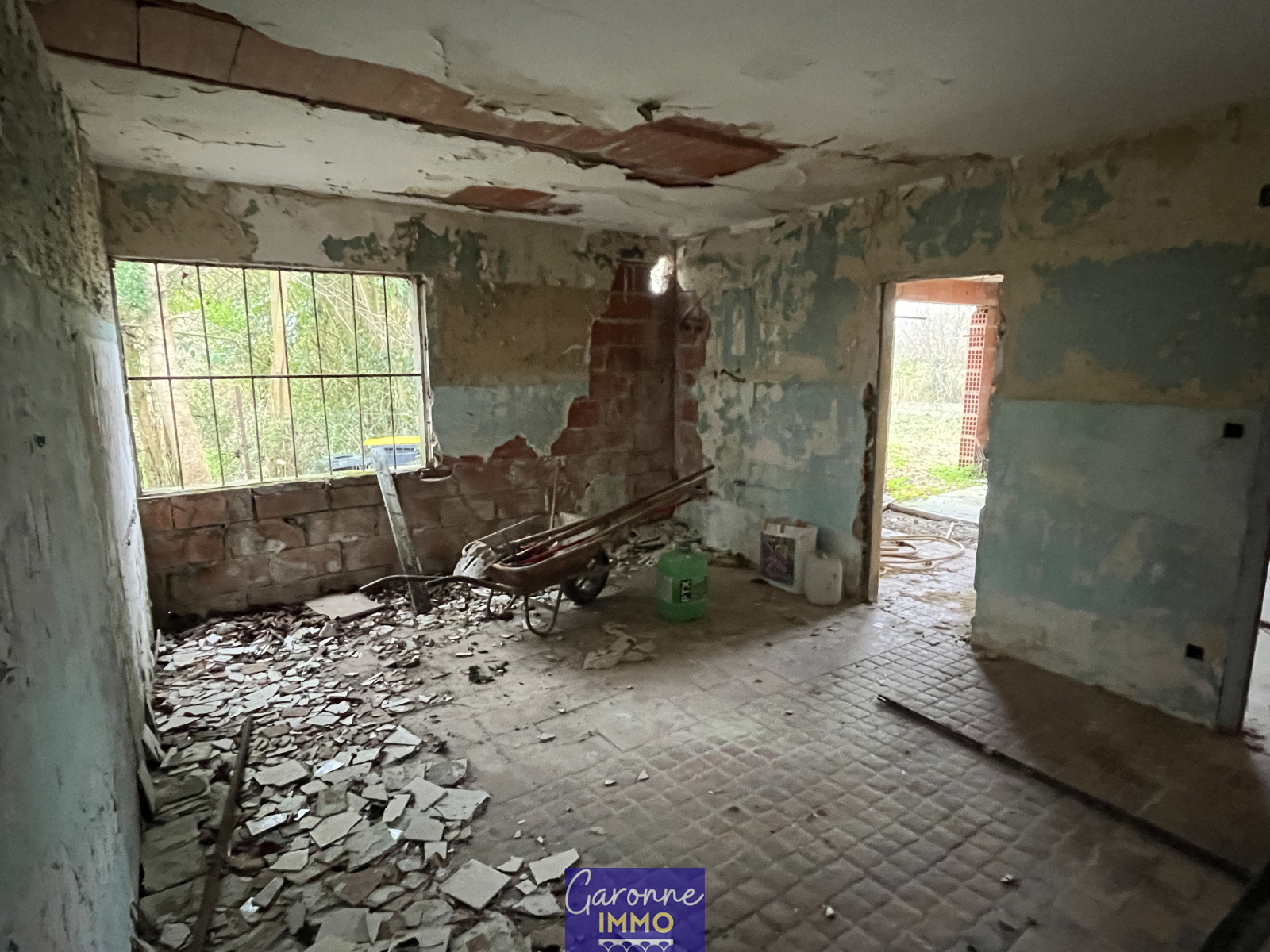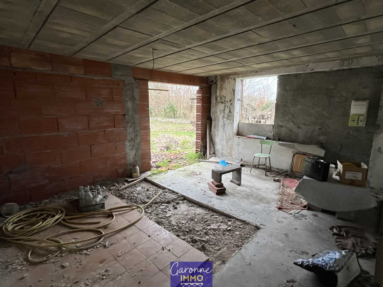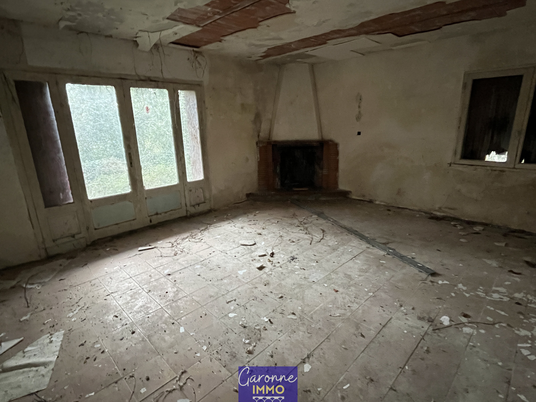 EXCLUVISITE - Bien avec travaux situé en zone innondable à 5mn en voiture du centre ville de TONNEINS. Le bien comprend en rez-de-chaussée 4 pièces + un bureau; à l'étage, un toit terrasse de 95m² sur un hourdis béton ainis qu'une pièce couverte de 22m².