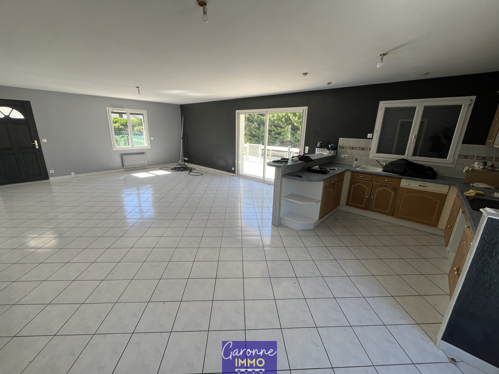 À l’extérieur, un terrain arboré de 1 800 m² avec piscine creusée de 8 x 4 m.